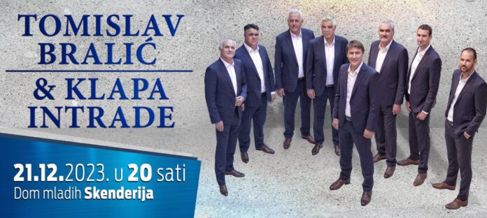 Samo Tomislav Bralić i klapa Intrade uspijevaju već više od deset godina koncertnim programom klapskih pjesama i dalmatinskih šansona rasprodati velike koncertne dvorane na našim prostorima. A ovog decembra, pred njima je prvi veliki koncert u Sarajevu koji će se održati 21. decembra u Domu mladih, s početkom u 20h.