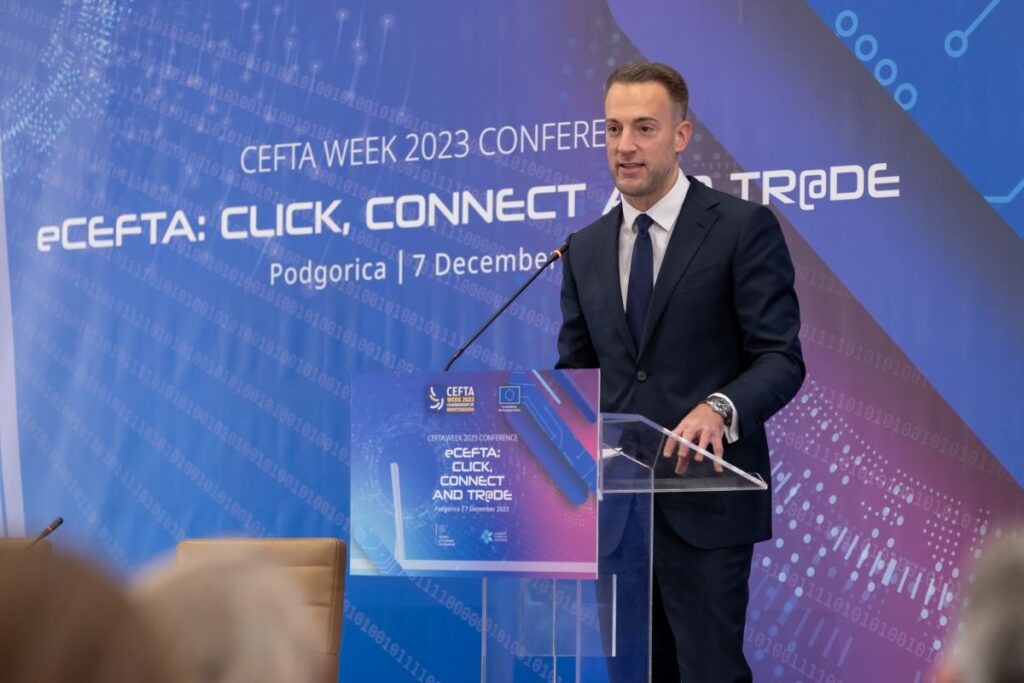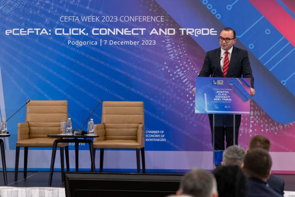 Konferencija CEFTA Week pod nazivom “eCEFTA: Klikni, poveži se i trguj”(eCEFTA: Click, Connect and Tr@de), koja je uživo i online okupila oko 300 učesnika, održana je danas u Podgorici. Tradicionalno godišnje okupljanje visokih zvaničnika iz CEFTA ekonomija, Evropske unije i drugih regionalnih i međunarodnih organizacija, zajedno sa predstavnicima privrede, pružilo je priliku da se istraže potencijali digitalne trgovine, sa fokusom na stvaranje efikasnijeg i međusobno povezanog trgovinskog okruženja. Također, događaj je bio prilika i za sumiranje postignutih rezultata i postavljanje osnova za budući tok djelovanja.