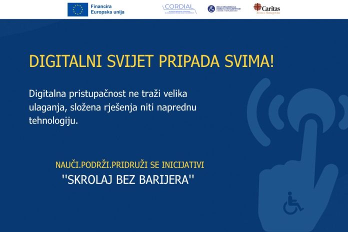 Caritas BiH, u suradnji s Unijom organizacija osoba s invaliditetom u BiH, je kreirao mini vodič „Digitalni svijet pripada svima – Praktični savjeti za pristupačnije web stranice i online sadržaj“ u okviru kampanje ”Skrolaj bez barijera”, unutar projekta CORDIAL koji financira Europska unija.