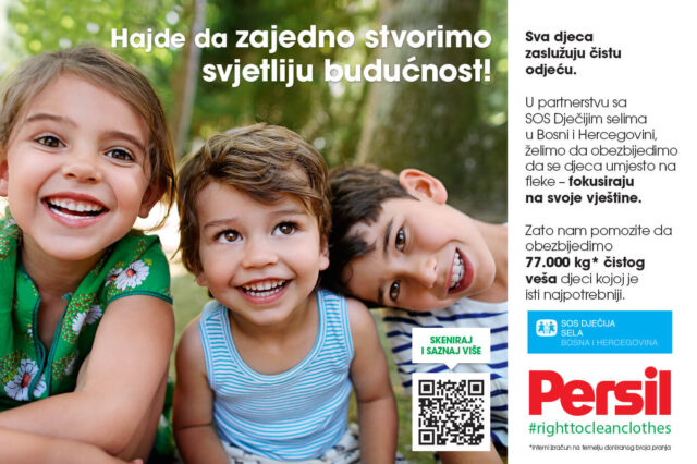Henkelov brend Persil u partnerstvu sa organizacijom SOS Dječija sela u BiH pokrenuo je projekat čija je poruka da „Sva djeca zaslužuju čistu odjeću“. Tokom mjeseca marta svakom kupovinom Persil deterdženta postajete dio misije, a to je da se obezbijedi 77.000kg čistog veša za djecu i mlade koje podržava organizacija SOS Dječija sela u BiH.