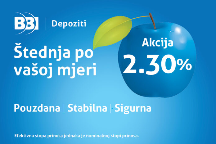 Započnite novu godinu dobrim odlukama i počnite da štedite u BBI banci. Želite li svoj novac povjeriti stabilnoj, sigurnoj i kapitalno jakoj finansijskoj instituciji koja svoja ukupna sredstva ulaže u razvoj privrede naše zemlje, obratite se Bosna Bank International (BBI) d.d. Sarajevo. Oročena štednja je optimalan izbor ukoliko imate određeni iznos sredstava i nemate namjeru koristiti ta sredstva u određenom vremenskom periodu. Ovaj model vam omogućava da svoj novac, u domaćoj (KM) ili stranoj valuti (EUR, USD), deponujete na unaprijed određeni period na svoj štedni račun u BBI banci i ostvarite prihod po osnovu investiranja u profitabilne projekte. Do kraja februara 2023. u BBI banci su klijentima na raspolaganju akcijske stope prinosa i do čak 2,30 posto.